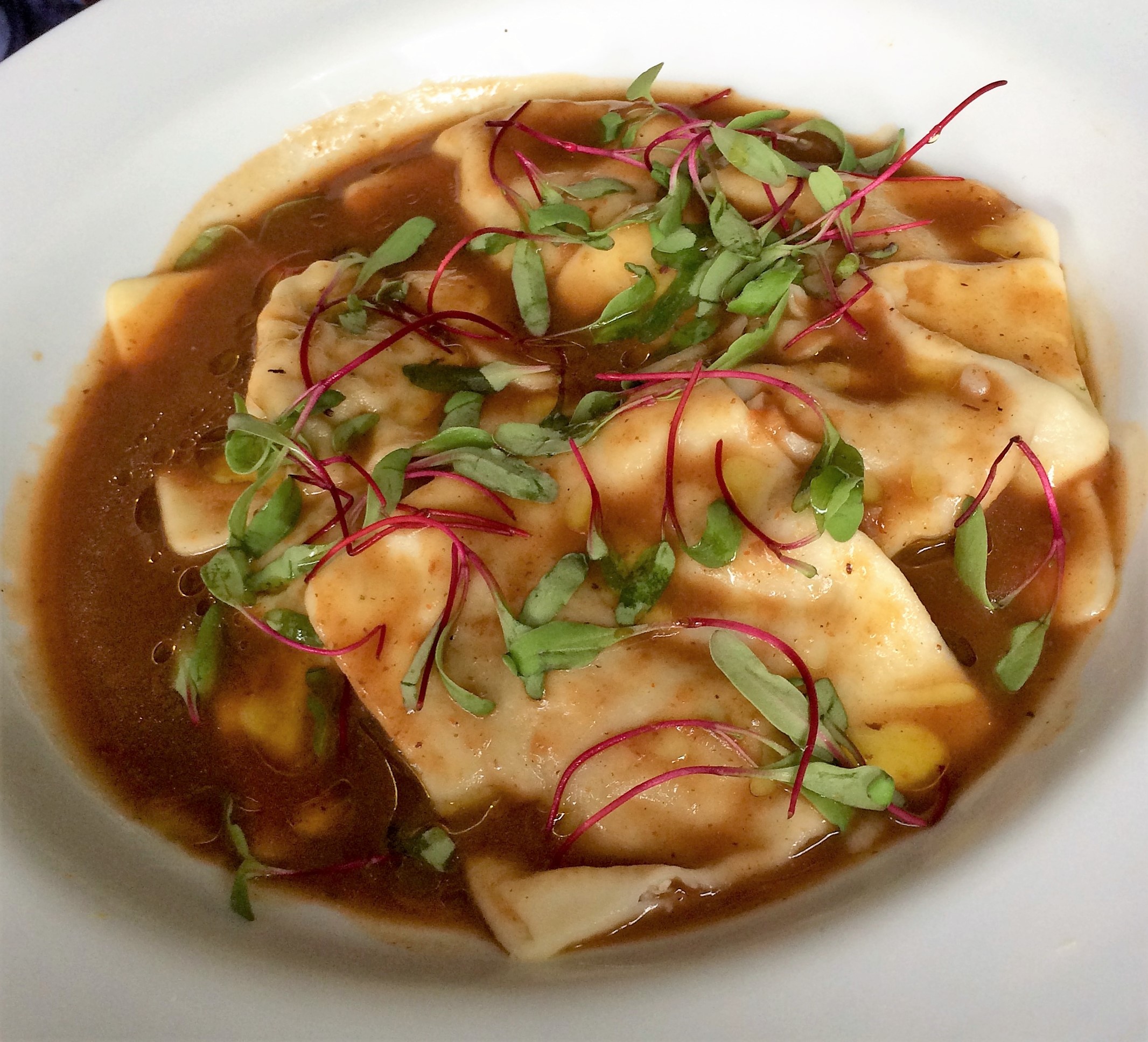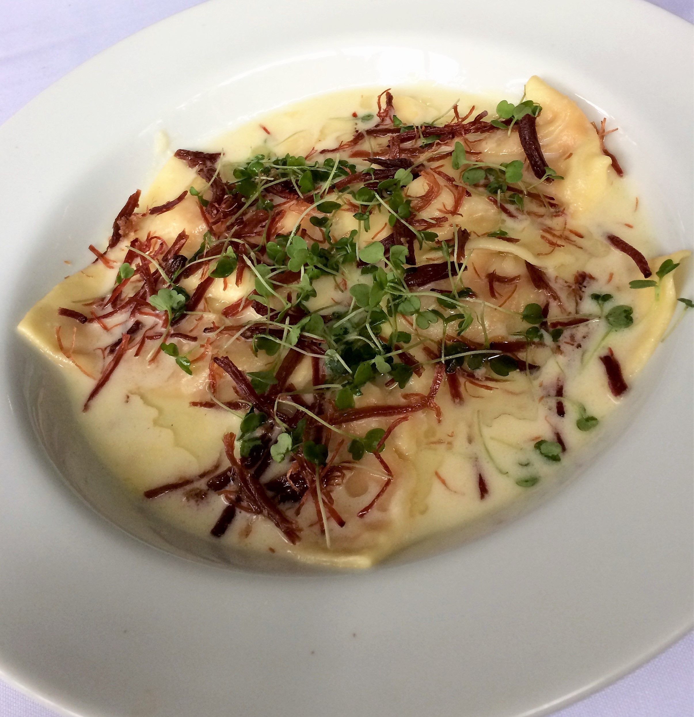 - Os raviólis de ragu de pato com manteiga de sálvia