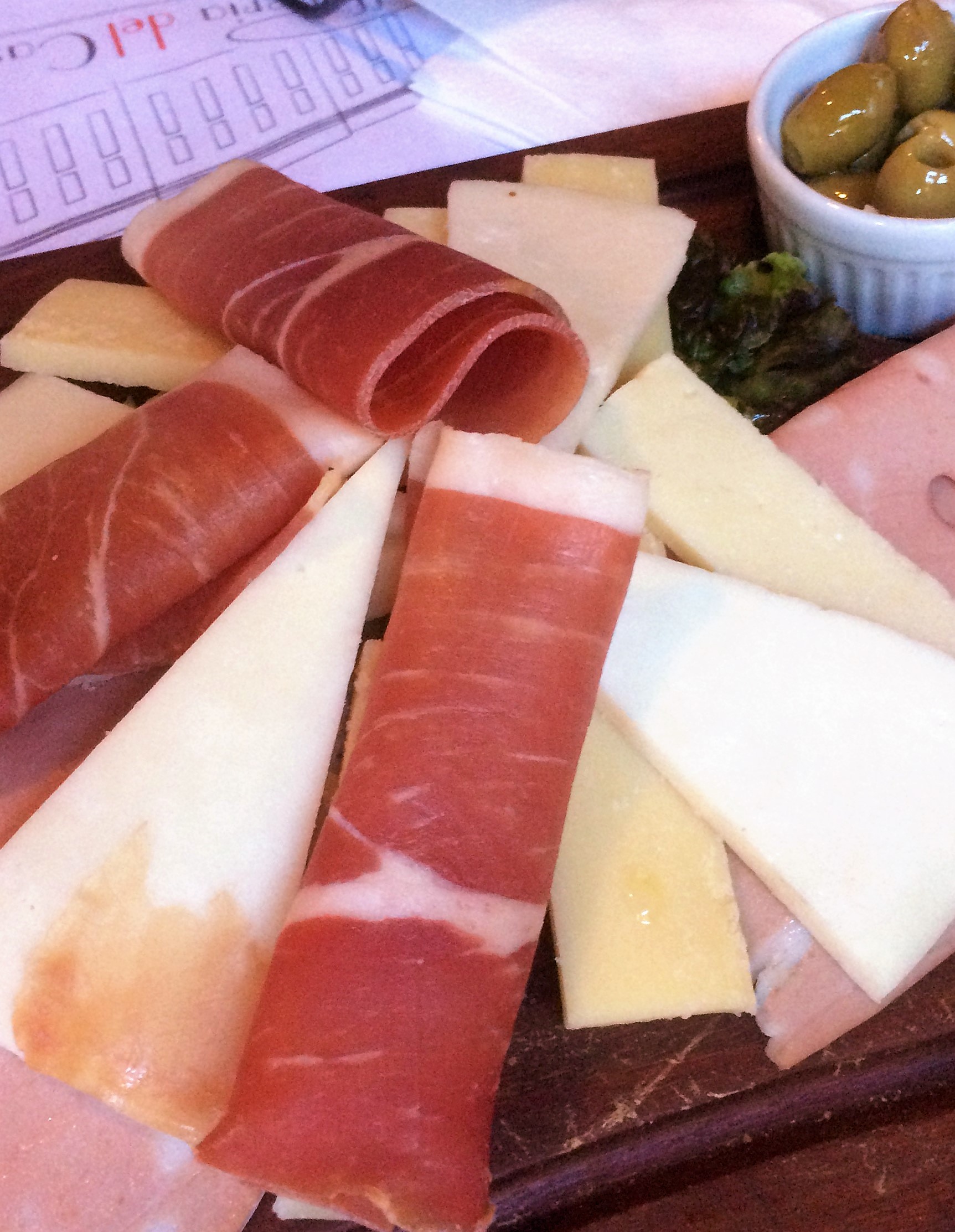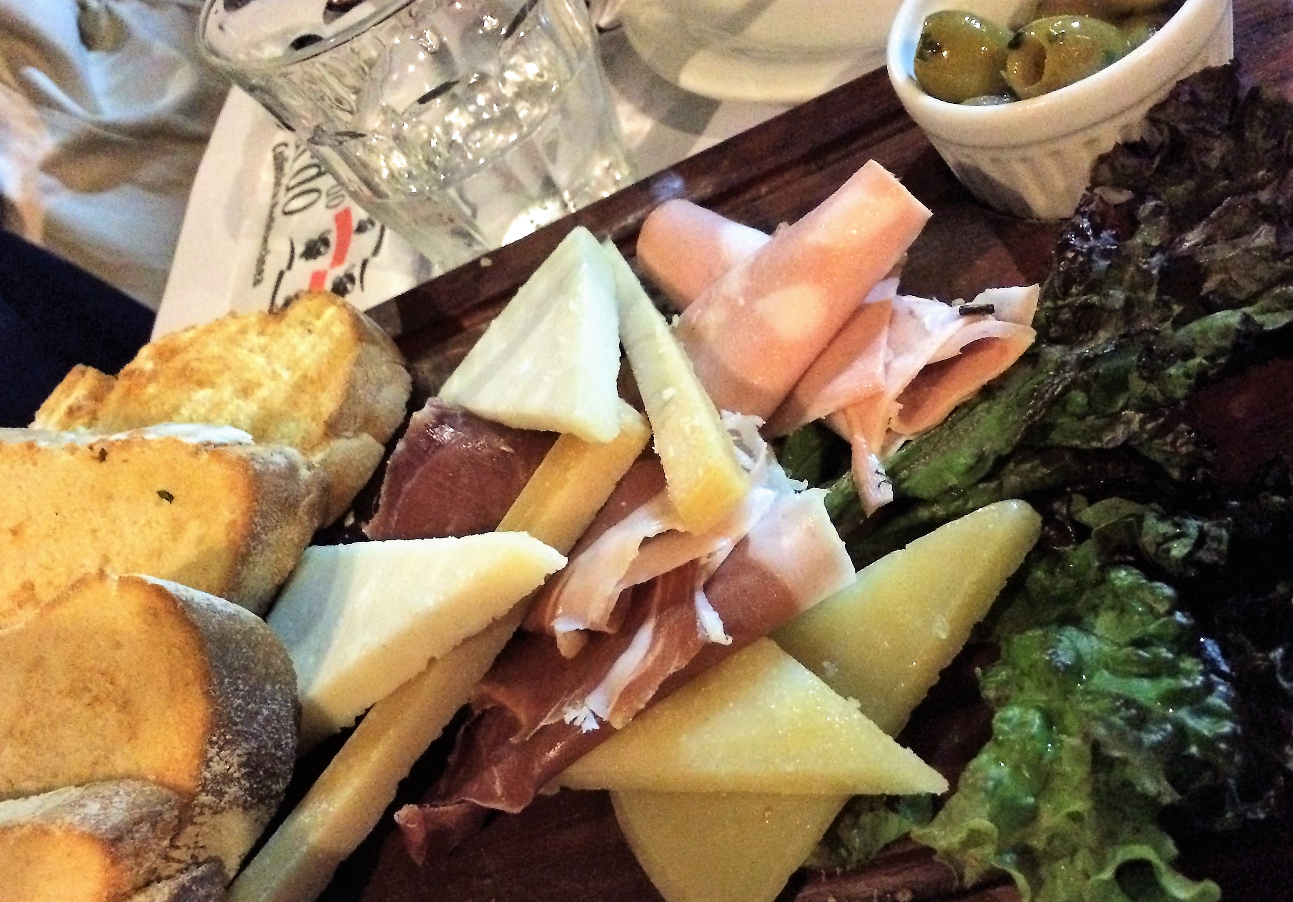 Continuando nas entradas, experimentamos o mix de bruschettas, com o bom pão da casa, escolhendo as variedades pomodoro, búfala, cogumelo e berinjela. Bem boas! Ainda como entrada, linguiça artesanal, assada com cebolas roxas e o típico couvert sardenho: queijos pecorino sardo 100%, caprino e grana padano, presunto de Parma, mortadela italiana, azeitonas, pão da casa.