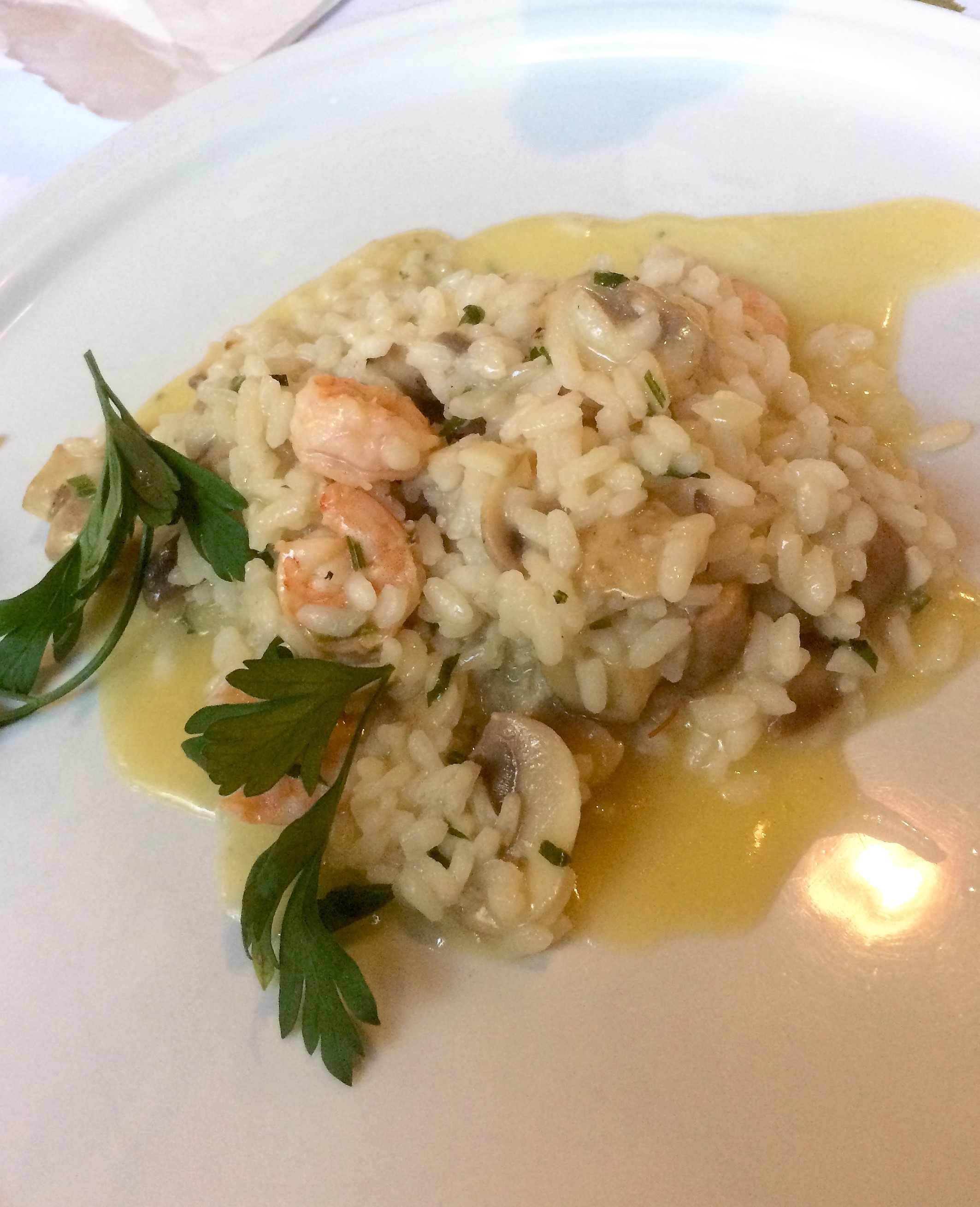 - O risotto de camarões com funghi